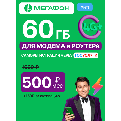 Сим-карта Мегафон интернет 60Гб 500руб/мес для модема и роутера