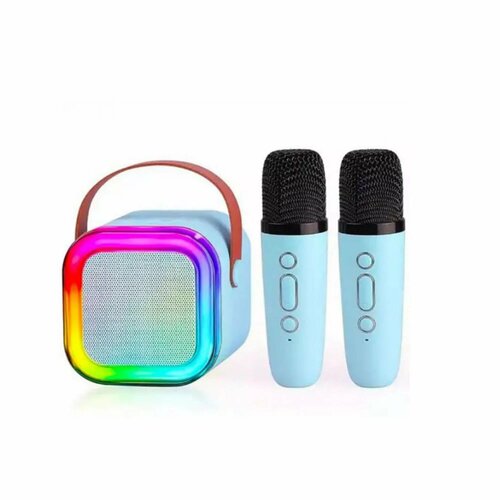 Караоке система с двумя беспроводными микрофонами и колонкой (синий)