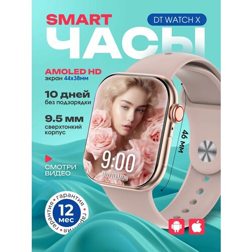 Смарт-часы DT Watch X (10), 46 мм, NFC, AMOLED-дисплей, 2 ремешка в комплекте, Золотой