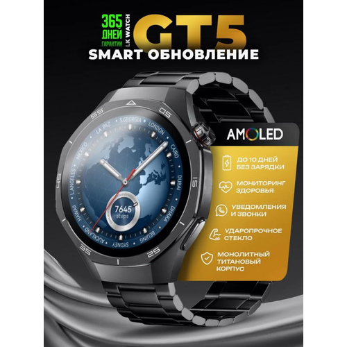 Cмарт часы LK GT5 Умные часы PREMIUM Series Smart Watch AMOLED, iOS, Android, Bluetooth звонки, Уведомления, Черный