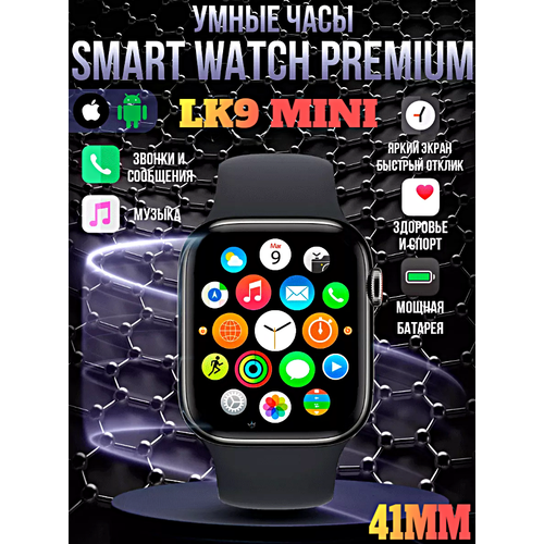 Смарт часы LK9 MINI Умные часы 41MM PREMIUM Series Smart Watch AMOLED, iOS, Android, Bluetooth звонки, Черный