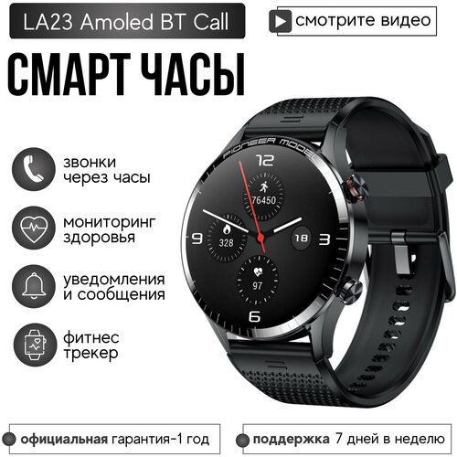 Твой Гаджет Умные смарт часы Smart Watch LA23 (Черный с черным силиконовым ремнем)