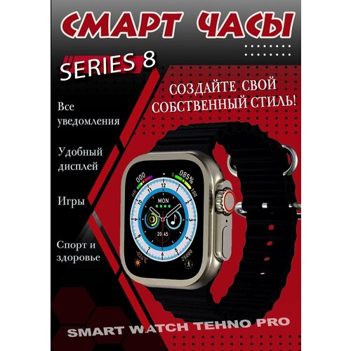 Стильные и современные умные часы WATCH 8 ULTRA/12 спортивных режимов BE ON TOP/Множество полезных функций/Черные