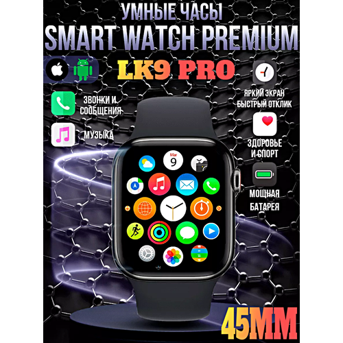 Смарт часы LK9 PRO Умные часы PREMIUM Series Smart Watch AMOLED, iOS, Android, Bluetooth звонки, Уведомления, Черный
