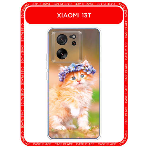 Чехол на Xiaomi 13T / Сяоми 13Т с принтом Рыжий кот в венке