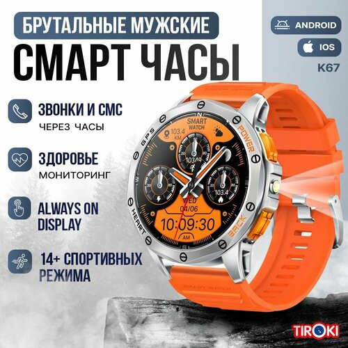 Cпортивные мужские смарт часы Tiroki K67 с большим экраном, голосовым ассистентом, Always on Display, Bluetooth звонком, мониторингом пульса и давления, счетчиком калорий, отображением погоды