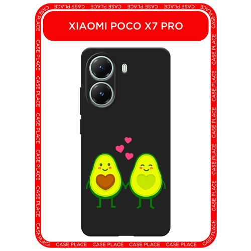 Черный матовый чехол на Poco X7 Pro / Поко X7 Про с принтом Авокадная любовь