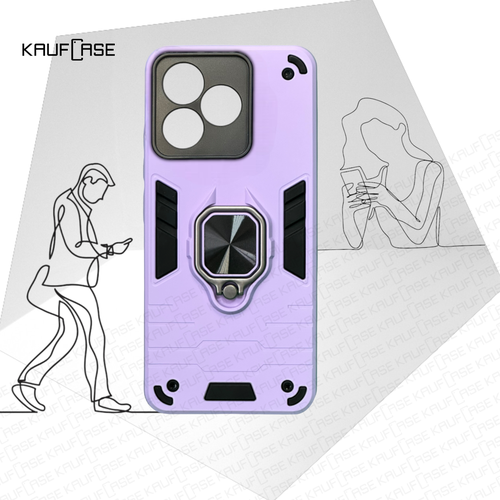 Противоударный чехол на Realme C53/C51 (RMX3760/ RMX3830) (6.74"), сиреневый. Кольцо-держатель и магнитное крепление, яркие пластиковые защитные вставки