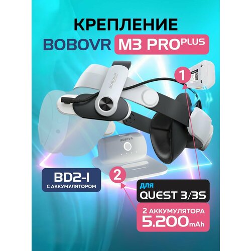 Крепление для Oculus Quest 3 и 3s аксессуары - BoboVR M3 Pro Plus с двумя аккумуляторами и зарядной станцией