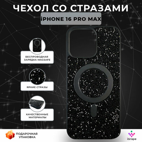 Чехол со стразами с MagSafe для iPhone 16 Pro Max, iGrape (Черный) / чехол на айфон 16 про макс
