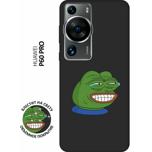 Матовый Soft Touch силиконовый чехол на Huawei P60 Pro, Хуавей П60 Про с 3D принтом "Pepe the Frog" черный