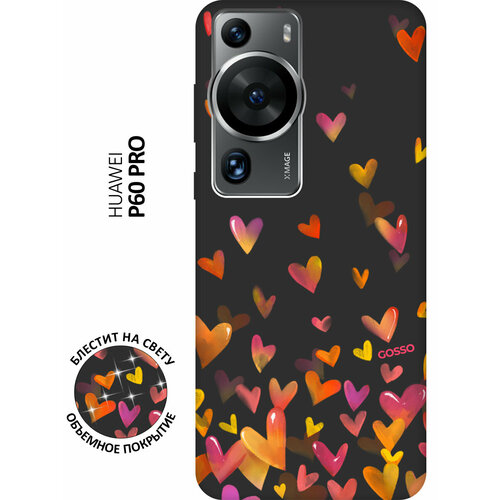 Матовый Soft Touch силиконовый чехол на Huawei P60 Pro, Хуавей П60 Про с 3D принтом "Flying Hearts" черный