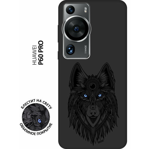 Матовый Soft Touch силиконовый чехол на Huawei P60 Pro, Хуавей П60 Про с 3D принтом "Grand Wolf" черный
