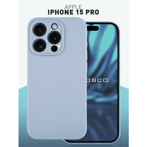 Матовый силиконовый чехол Rosco на Apple iPhone 15 Pro (Айфон 15Про), тонкий, сиренево-голубой