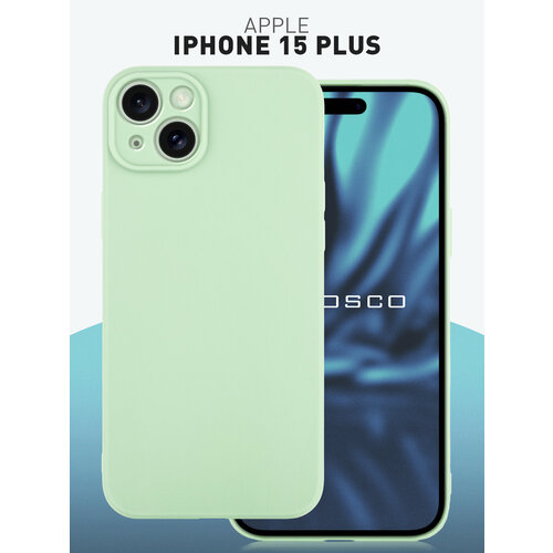 Матовый силиконовый чехол Rosco на Apple iPhone 15 Plus (Айфон 15 Плюс), тонкий, светло-зеленый