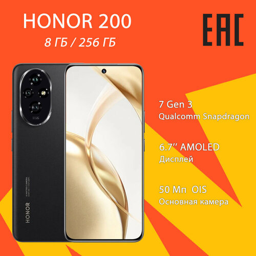 Смартфон Honor 200 5G Русская Версия, 8/256GB, 6.7" AMOLED, 120Hz
