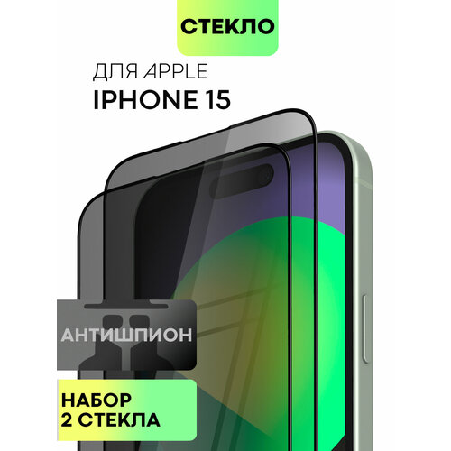 Набор защитных стёкол антишпион на Apple iPhone 15 (Айфон 15), бренд BROSCORP, с эффектом приватности, 2 шт