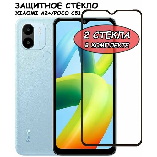 Защитное стекло "Полное покрытие" для Xiaomi Redmi A2+ Plus / Poco C51 ксиаоми А2 плюс Поко С51 Черный - 2 стекла в комплекте