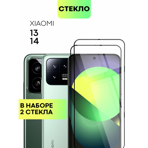 Набор защитных стёкол BROSCOP на Xiaomi 13 и 14 (Сяоми 13 и 14), глянцевые с чёрной рамкой, 2 шт