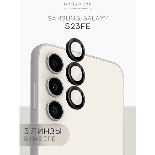 Защитные стекла на камеры Samsung Galaxy S23 FE (Самсунг Галакси С23 ФЕ), бренд BROSCORP, с чёрной рамкой