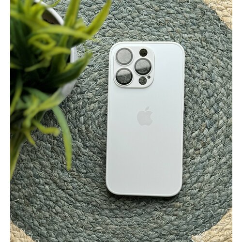 Чехол матовый AG Glass case Pearly White для IPhone 15 Pro с поддержкой беспроводной зарядки и линзами