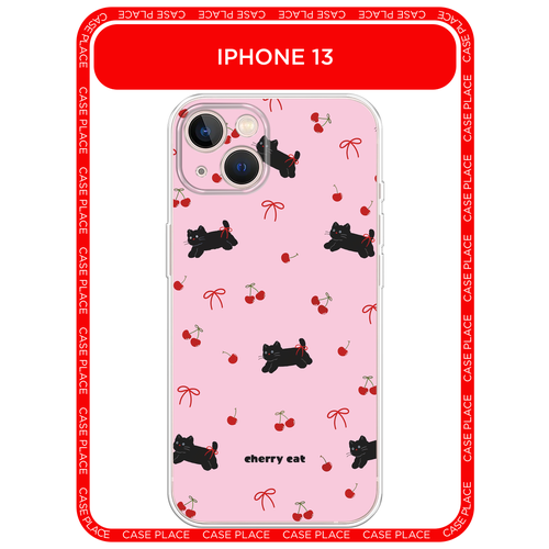 Силиконовый чехол на Apple iPhone 13 / Айфон 13 с принтом cherry cat