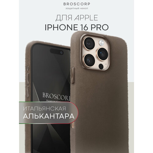 Премиальный чехол BROSCORP на Apple iPhone 16 Pro (Айфон 16 Про), защита камер, алькантара, пралине