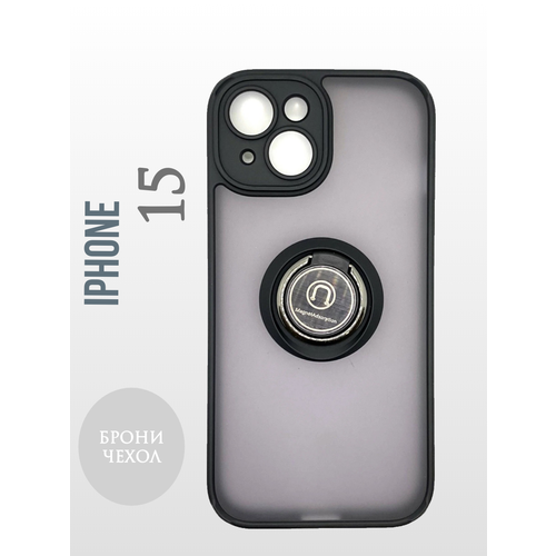 Чехол IPhone 15 противоударный (Брони чехол) с кольцом-подставкой и металлической пластиной