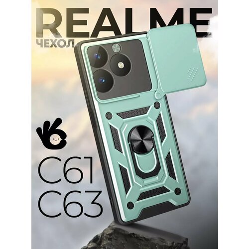 Чехол О'кейси, для Realme C63, C61, зелёный, с кольцом, с защитой камеры
