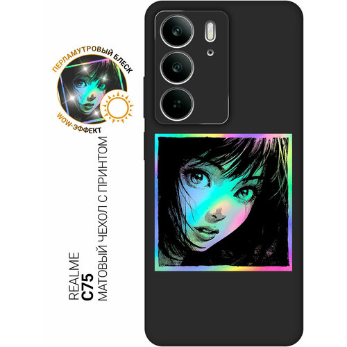 Силиконовый чехол на Realme C75 с принтом "Очарование аниме-красоты" матовый черный