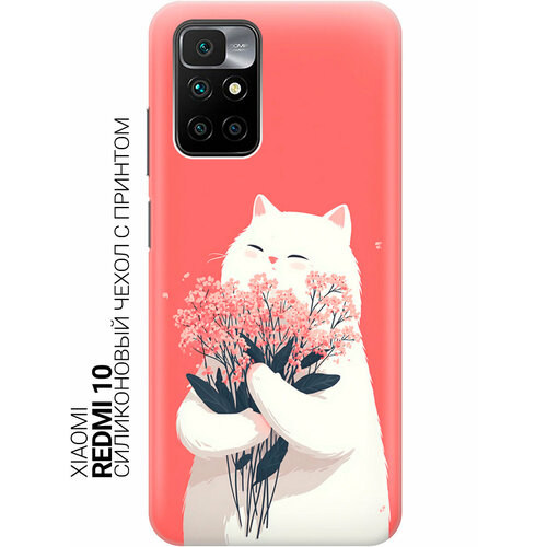 Силиконовый чехол на Xiaomi Redmi 10 с принтом "Кот и нежное прикосновение весны"