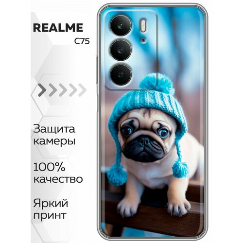 Чехол для Realme C75 4G с принтом Щенок мопса в шарке (Реалми С75 4G)