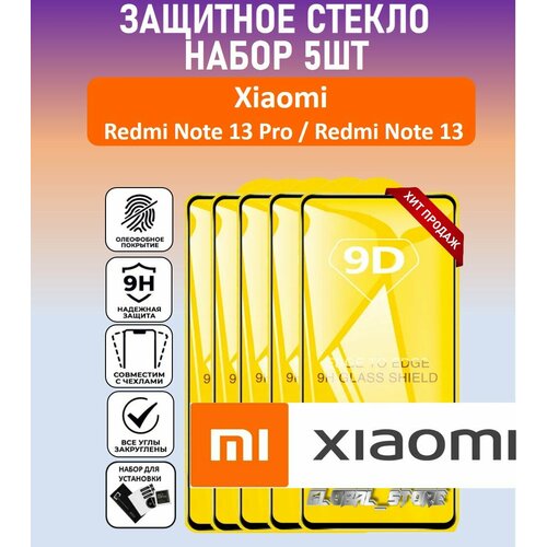 Комплект 5 в 1: Защитное полноэкранное стекло для Xiaomi Redmi Note 13 Pro / Redmi Note 13 ( 5 шт ) Ксяоми Редми Ноте 13 Про / Редми Ноте 13 Full Glue