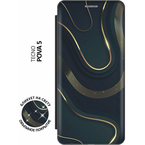 Чехол-книжка Золотистые акценты на Tecno Pova 5 / Техно пова 5 с эффектом блика черный