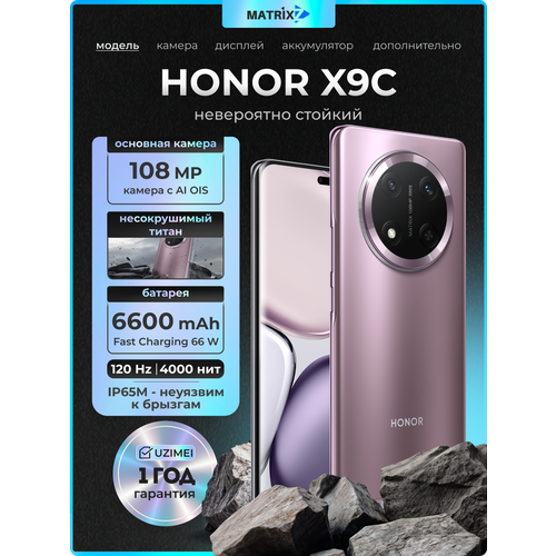 Смартфон HONOR X9C 5G 8/256 GB Titanium Purple, 108 Mp, 120 Hz, Amoled, 6600 mAh, 66 W, Dolby Atmos
