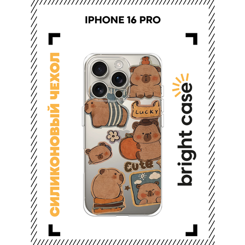 Чехол на Apple iPhone 16 Pro / Айфон 16 Про с принтом Милые капибары, прозрачный