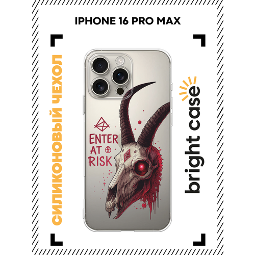 Чехол на Apple iPhone 16 Pro Max / Айфон 16 Про Макс с принтом Кровавый череп с рогами, прозрачный
