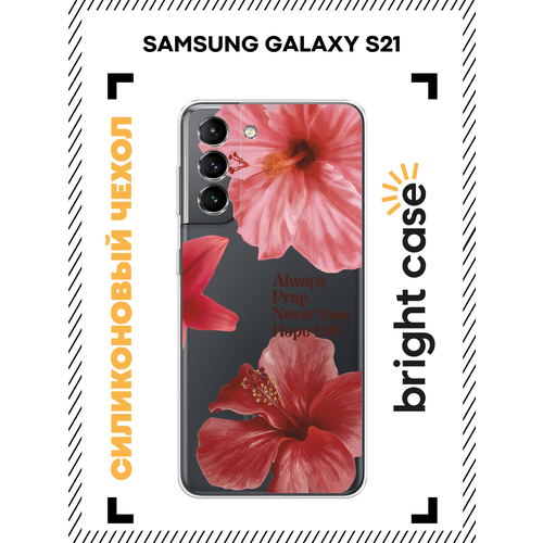Чехол на Samsung Galaxy S21 / Самсунг S21 с принтом Красные цветы, прозрачный