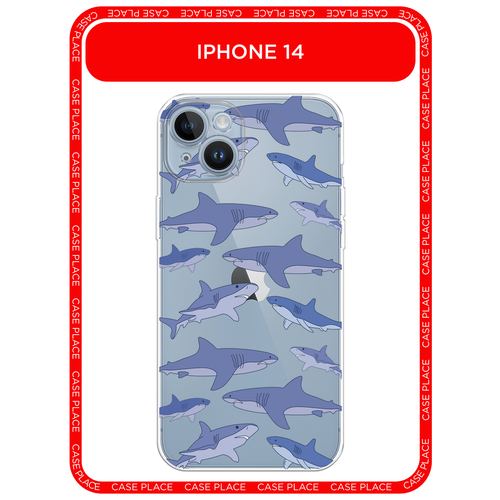Чехол на Apple iPhone 14 / Айфон 14 с принтом Акулы паттерн 2, прозрачный