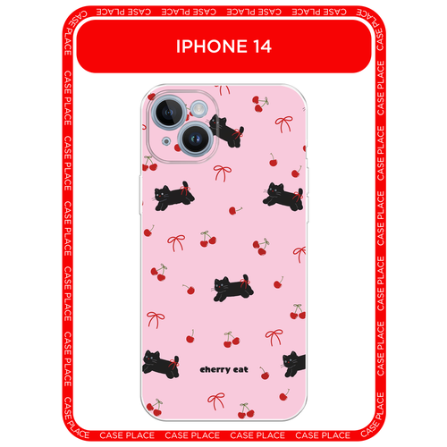 Силиконовый чехол на Apple iPhone 14 / Айфон 14 с принтом cherry cat
