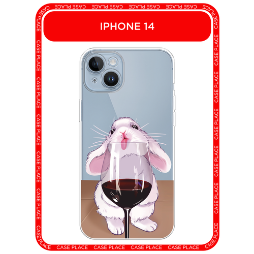 Чехол на Apple iPhone 14 / Айфон 14 с принтом Кролик облизывает бокал, прозрачный