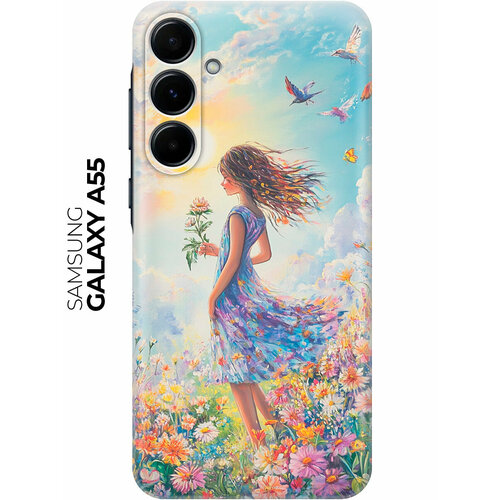 Силиконовый чехол на Samsung Galaxy A55 с принтом "Девочка в поле цветов"