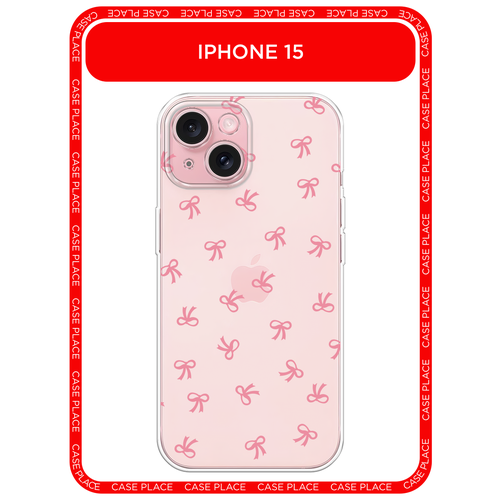 Чехол на Apple iPhone 15 / Айфон 15 с принтом Маленькие розовые бантики, прозрачный