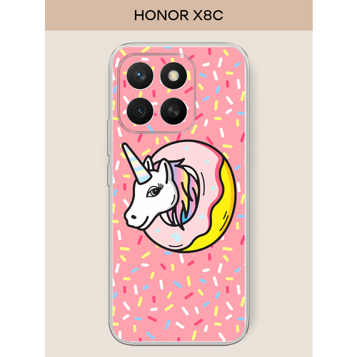 Силиконовый чехол на Honor X8c / Хонор X8c с принтом Единорог в пончике
