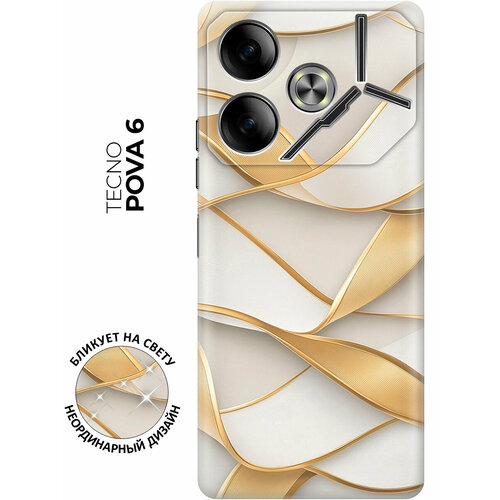 Силиконовый чехол на Tecno Pova 6 с принтом "Волны из золота"