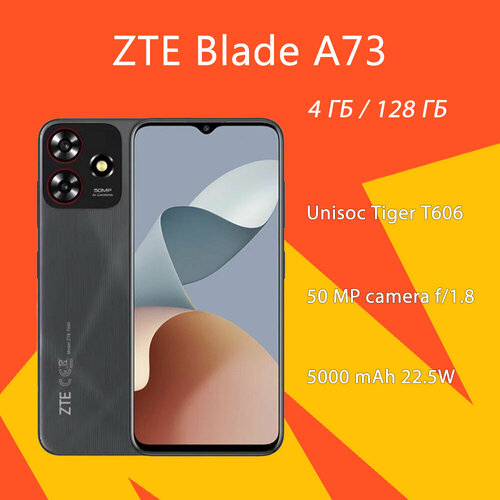 Смартфон ZTE Blade A73 глобальная версия 4ГБ/128ГБ(с наушниками), черный