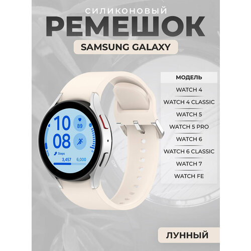Силиконовый ремешок для Samsung Galaxy Watch 7 / FE / 6 Classic, с серебристой застежкой, лунный