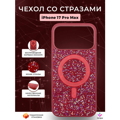 Чехол со стразами с MagSafe для iPhone 17 Pro Max, iGrape (Красный) / чехол на айфон 17 про макс