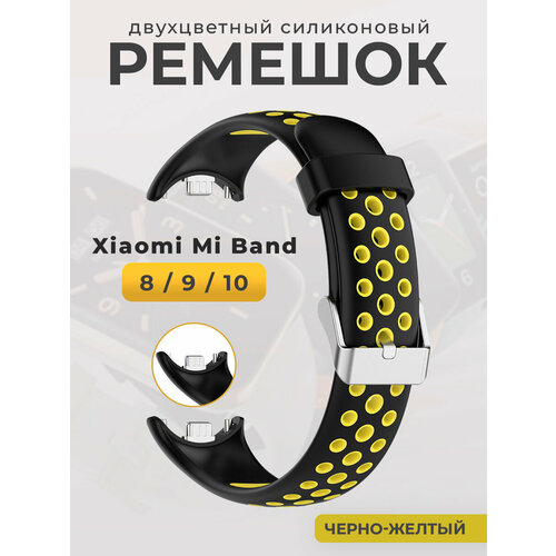 Двухцветный силиконовый ремешок для Mi Band 8/ 9, черно-желтый