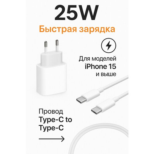 Быстрая зарядка, для iPhone 15/15 Pro/15 Max/16/16 Pro/16 Max, 25Вт, Type-C